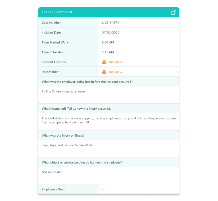 Access and apply case data securely, enabling you to manage and classify incidents as recordable or non-recordable.